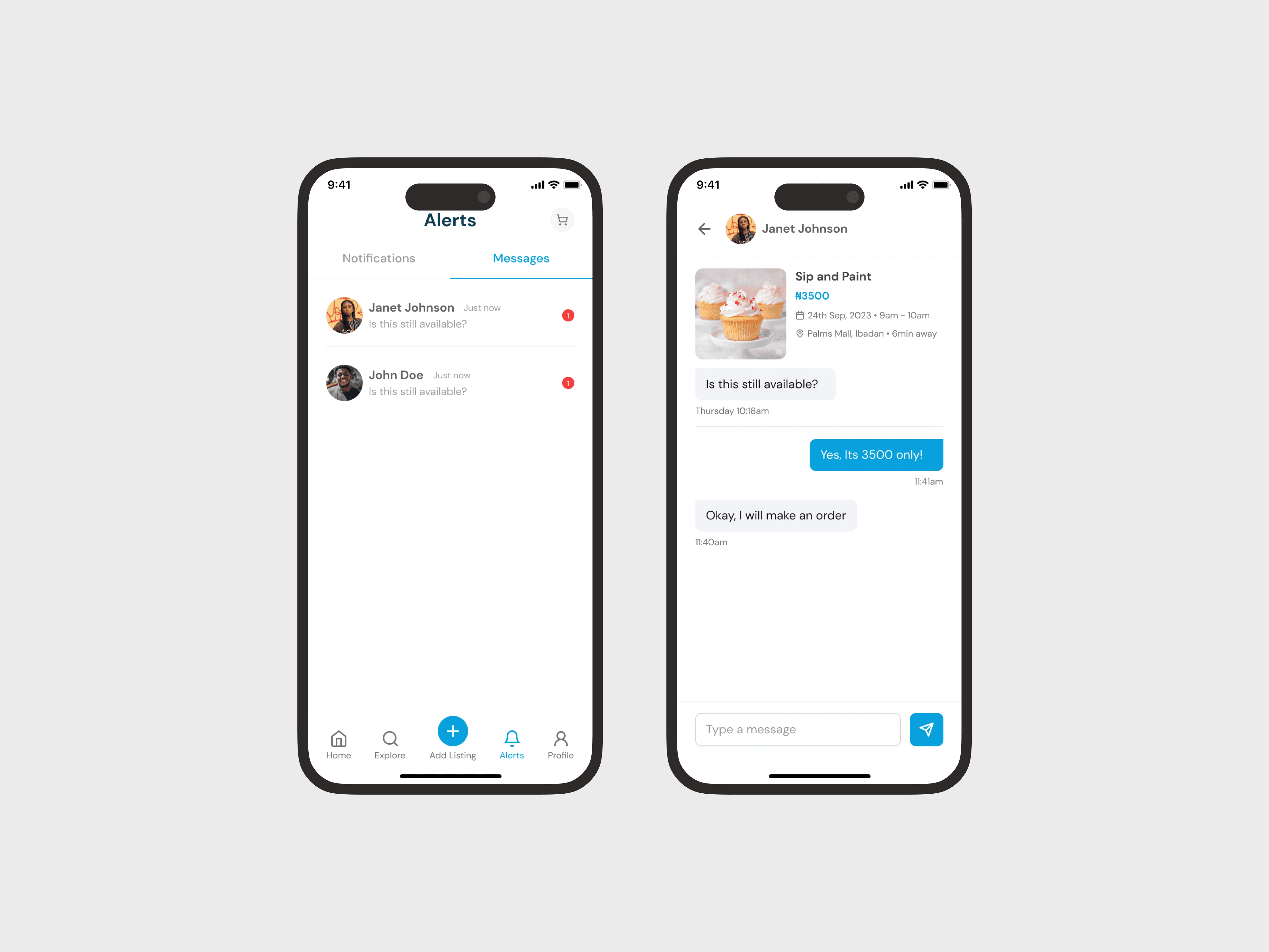 A streamlined messaging system that allows users to connect directly with vendors or other users. Paired with smart notifications, it ensures timely updates on messages, orders, and listing activities